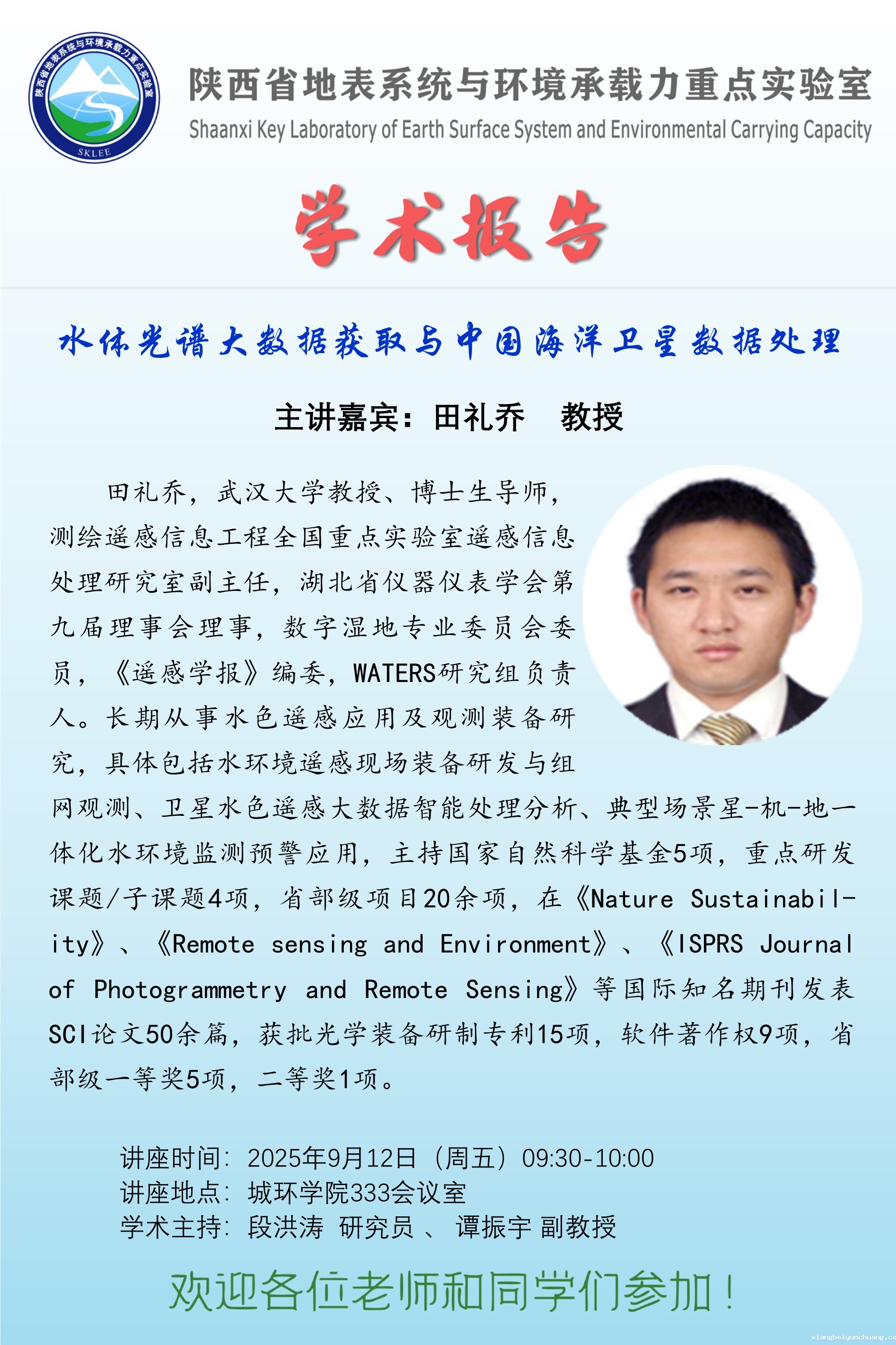 【学术讲座预告】水体光谱大数据获取与中国海洋卫星数据处理